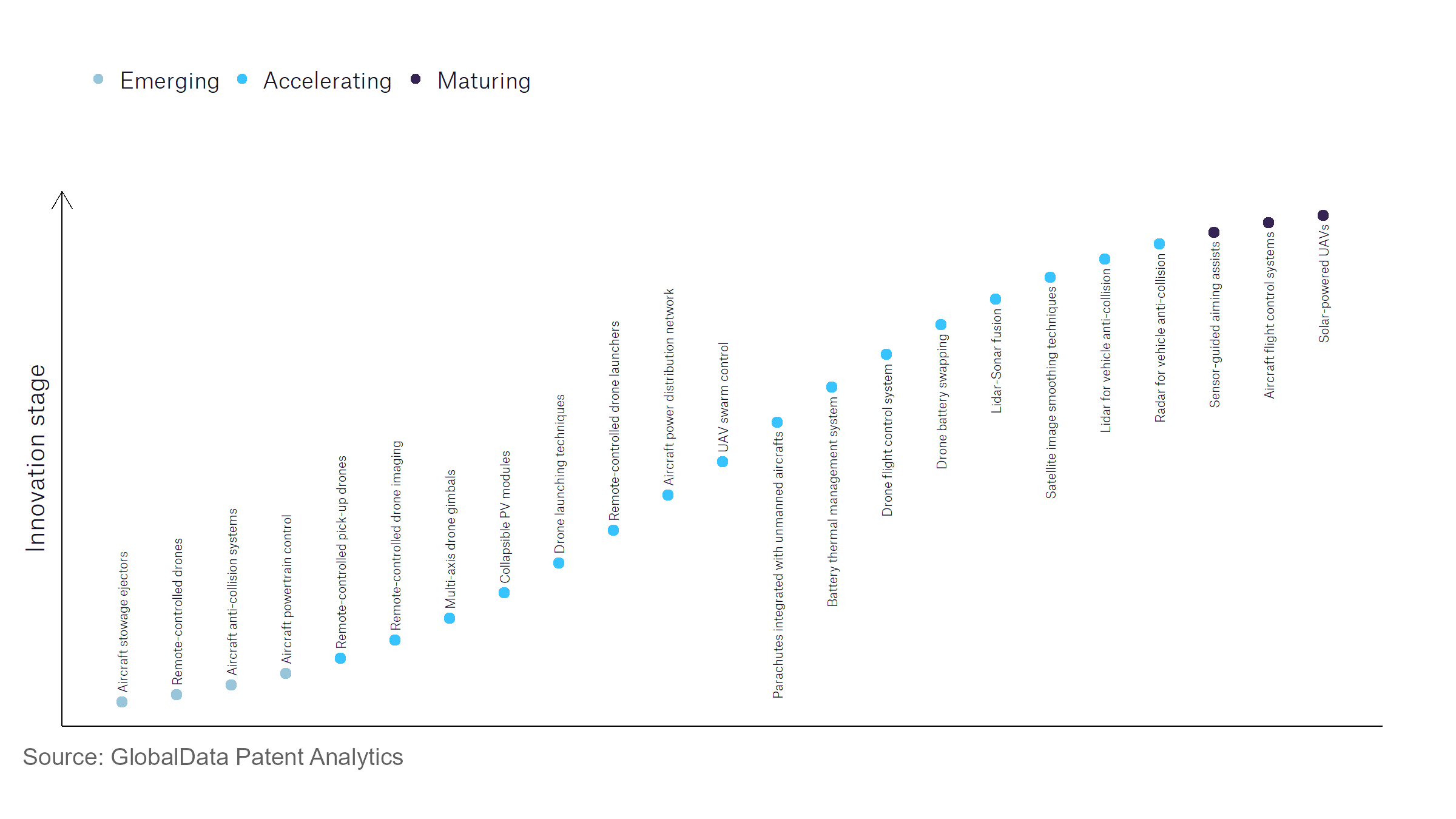 In the last three years alone, there have been over 174,000 patents filed and granted in the aerospace and defence industry, according to GlobalData’s report on Internet of Things in Aerospace, Defence & Security: drone flight control system.