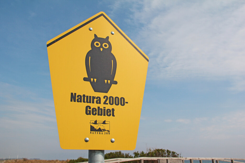 A sign denoting a Natura 2000 site. Natura 2000 is a network of nature protection areas in the territory of the European Union.