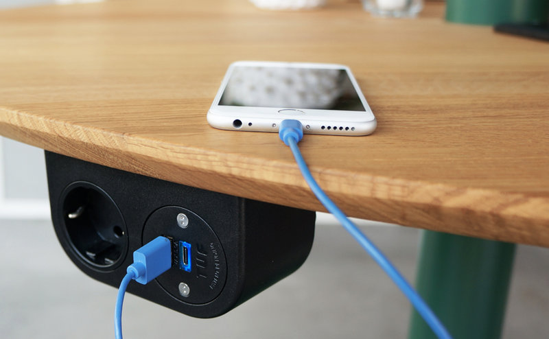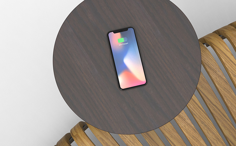 • Wireless chargers are integrated into café tables and seating units.